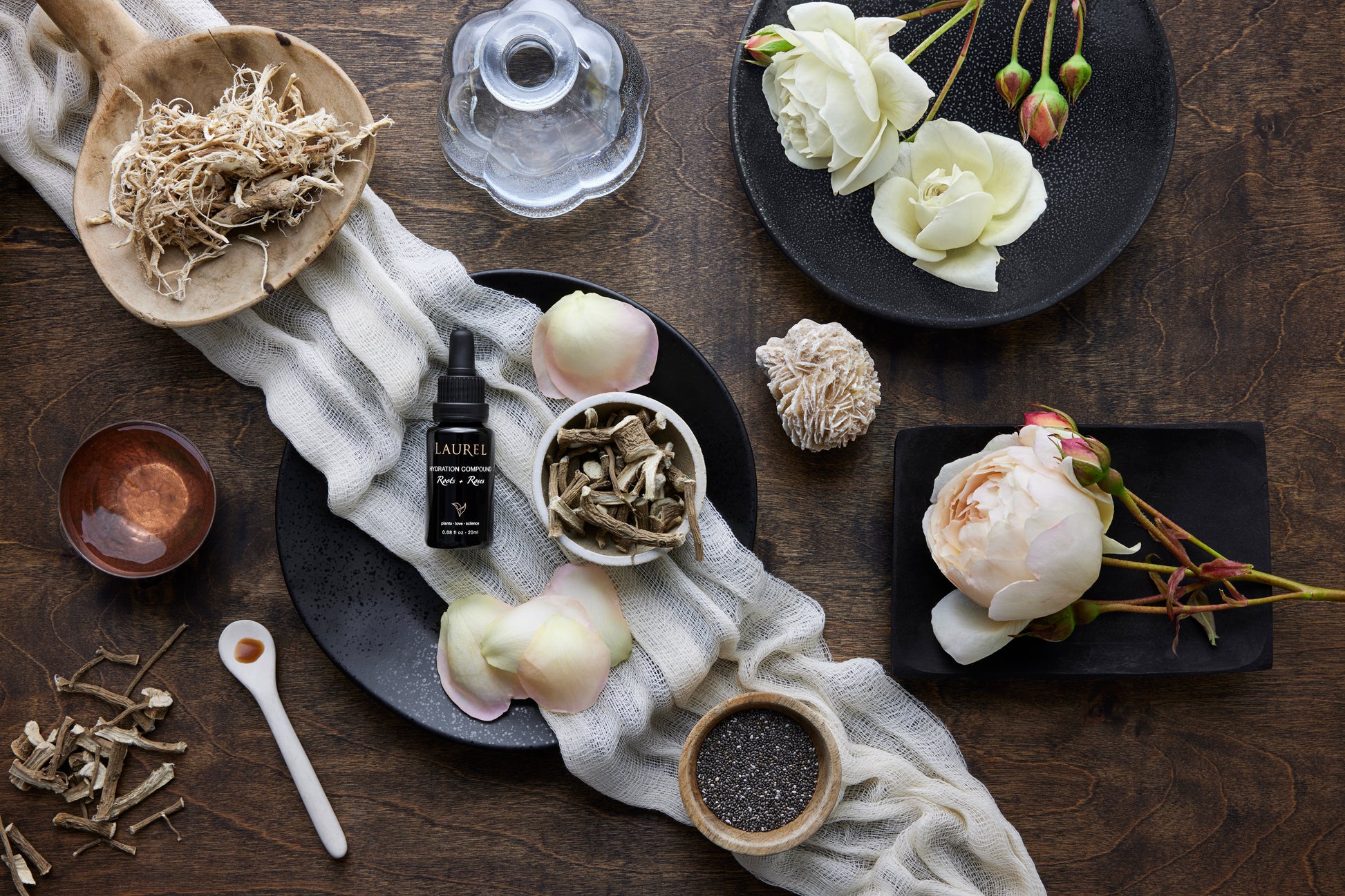 Hydration Compound is a powerful boost of whole plant extracts, formulated to target dehydration, dryness, fine lines and a lack of firmness. These potent drops contain concentrated, multi-layered infusions of Heirloom Rose Petals and Chia Seed Milk, along with Roots of Marshmallow and Astragalus. This whole plant supplement is rich in anthocyanins, flavonoids, polysaccharides, B vitamins such as niacin, betaine and plant humectants that mimic hyaluronic acid.
