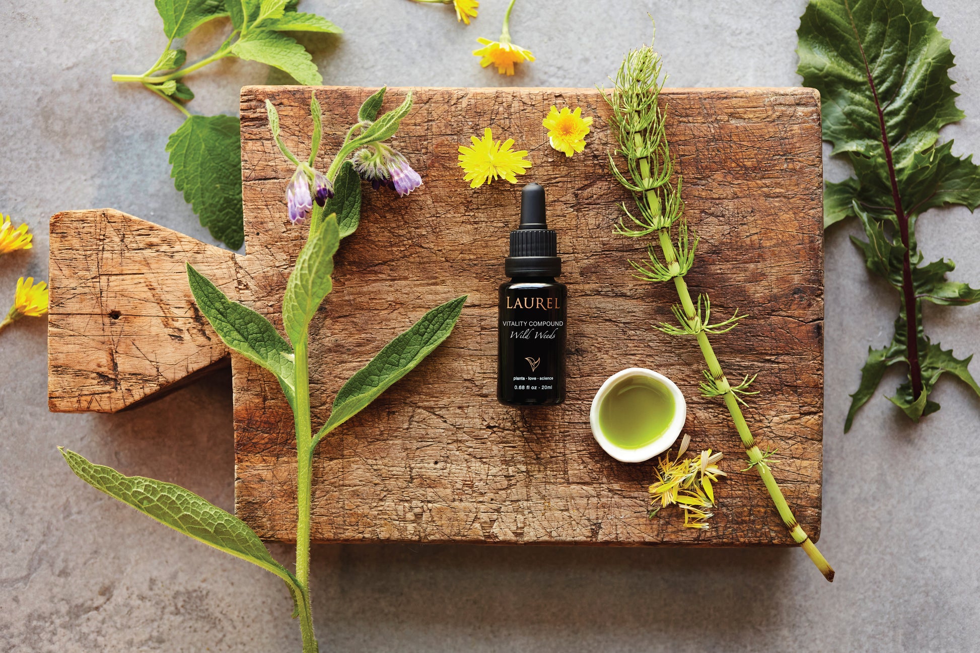 Vitality Compound is a nutrient-dense, whole-plant alternative to conventional retinols or stem cell serums. This concentrated herbal infusion features powerful weeds like Comfrey, Nettle, and Dandelion to act as growth factors, jumpstarting the skin’s own regenerative processes. These superfood plants support the rise of new healthy cells and collagen, and provide all the nutrients necessary to repair and rebuild, restoring vibrancy to skin that feels dull, thin or time-worn.